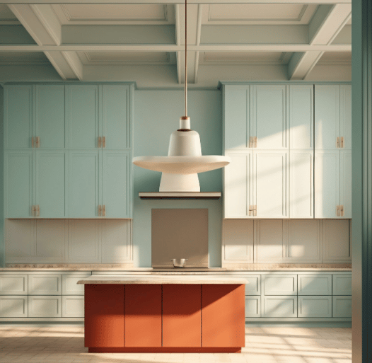 A high-end design trend that remains popular: contrasting island cabinets, darker lowers with lighter uppers, or bold accents to create a focal point.