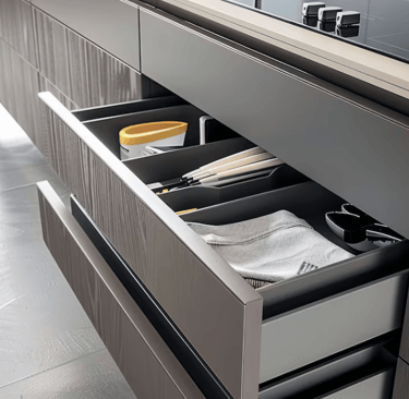 We focus on how you move through your kitchen and what you need daily—more drawers, better pantry function, smarter corner storage, and organization that makes the space easier to live in.