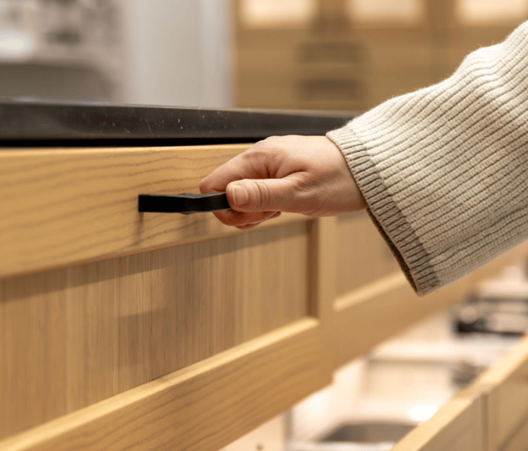 Our cabinetry integrates premium soft-close hinges and slides as standard, avoiding unnecessary upgrades. We design interiors with practical storage solutions like pullouts, tray dividers, corner solutions, and appliance garages to reduce daily friction.