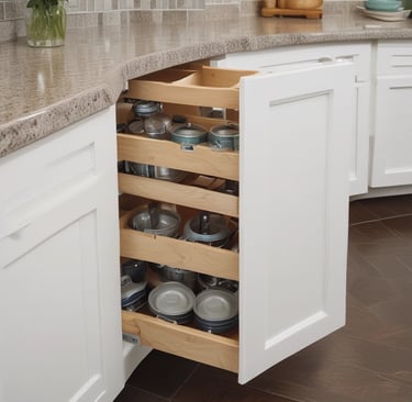 Corner cabinet solutions (lazy Susan, pull-out systems)