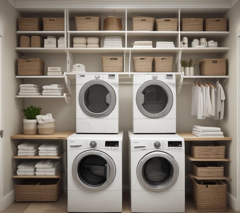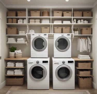 Finishes are selected with laundry room conditions in mind—moisture resistance, heat tolerance, and chemical cleaning compatibility. We use kitchen- and bath-grade finish systems with strict preparation and curing protocols for lasting performance. Edge banding and hardware finishes are coordinated to ensure a cohesive, durable look that withstands daily wear.